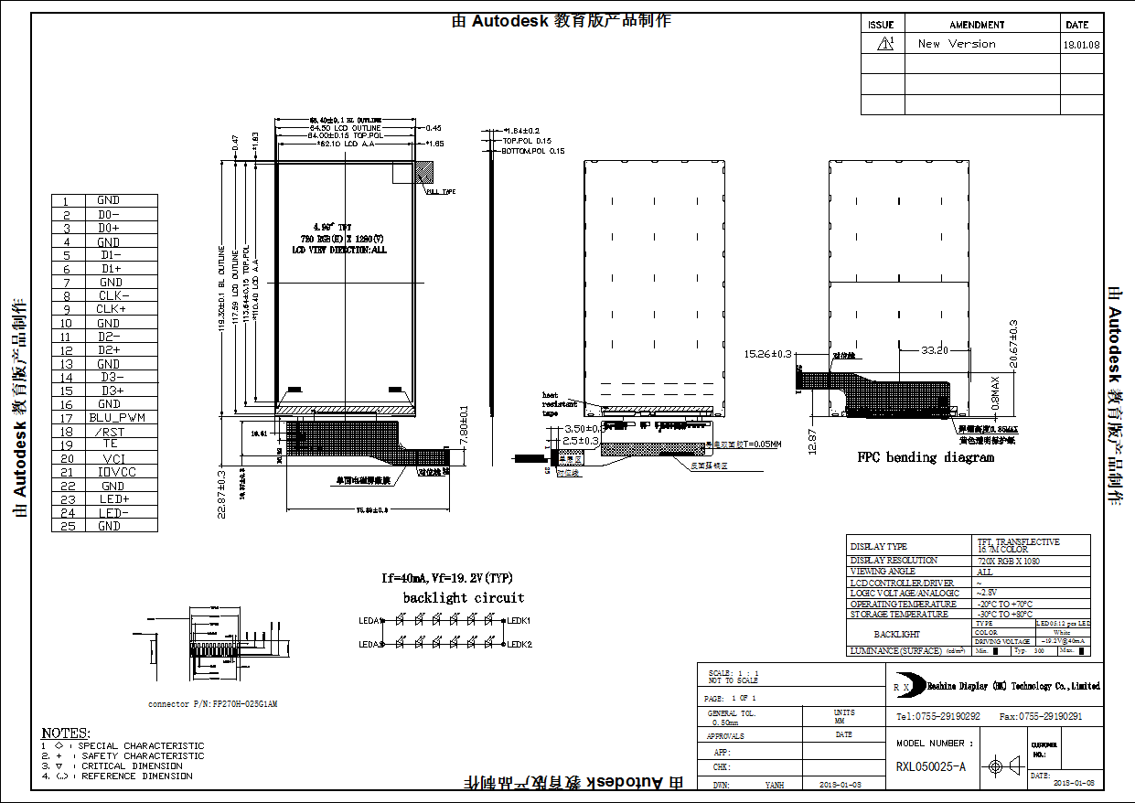 RXL050025-A 5.0 inch vertical 720x1280 with mipi interface Reshine Display Custom TFT LCD Display